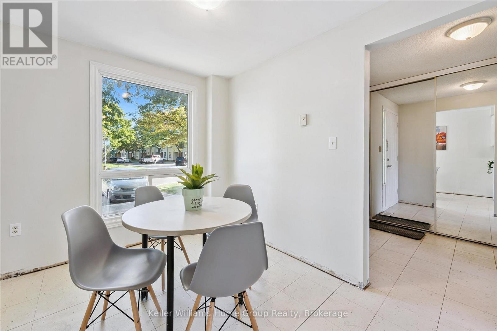Welcome to 40 Imperial Road N Unit 39!! Located in a well-maintained complex, this freshly painted 3-bedroom, 1-bath end-unit townhome offers modern comfort and unbeatable value! The main floor features a well-laid-out design, a bright living room, and a walkout to a private, tree-lined backyard perfect for relaxing or entertaining. The kitchen offers ample counter space, with an adjoining dining area that provides a warm, welcoming flow.Upstairs, you'll find new flooring throughout and three generous bedrooms, plus a 4-piece bath. This home also features a forced-air furnace, central A/C, and an owned water heater for year-round comfort and peace of mind.Ideally located just minutes from Costco, Zehrs, West End Rec Centre, schools, parks, and transit, this end unit combines style, convenience, and a great location perfect for first-time buyers or investors alike. Lets get you in for a peek! (id:4069)